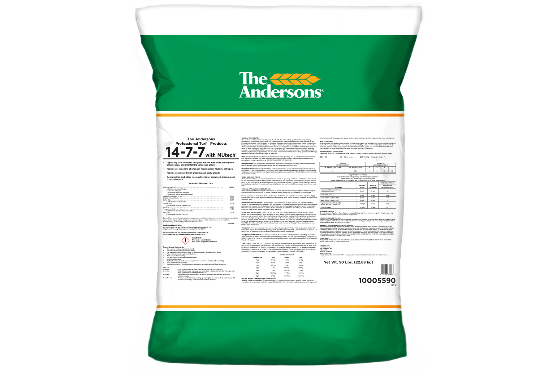 - "Specialty Use" fertilizer designed for fine turf areas, field grown ornamentals, and maintaining landscape plants