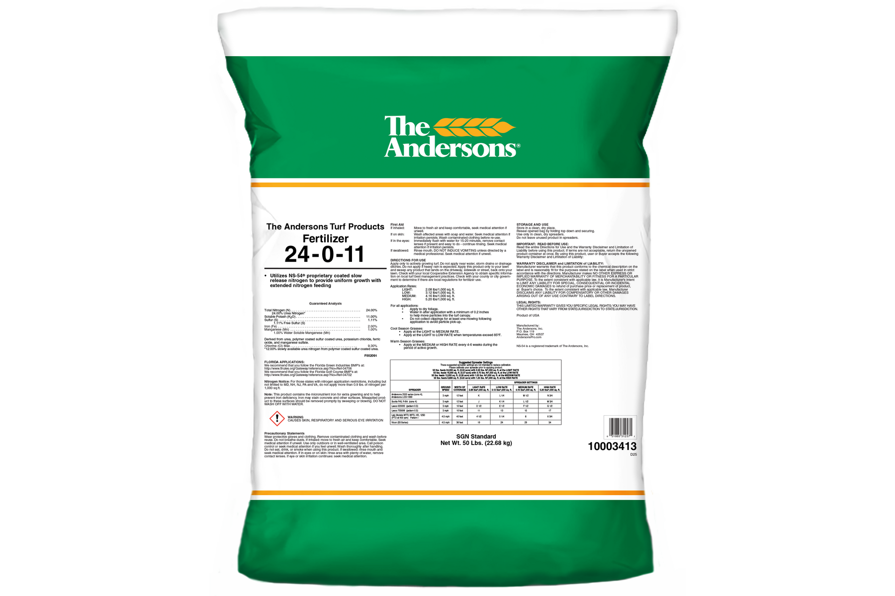 - Utilizes NS-54™ proprietary coated slow release nitrogen to provide uniform growth with extended nitrogen feeding