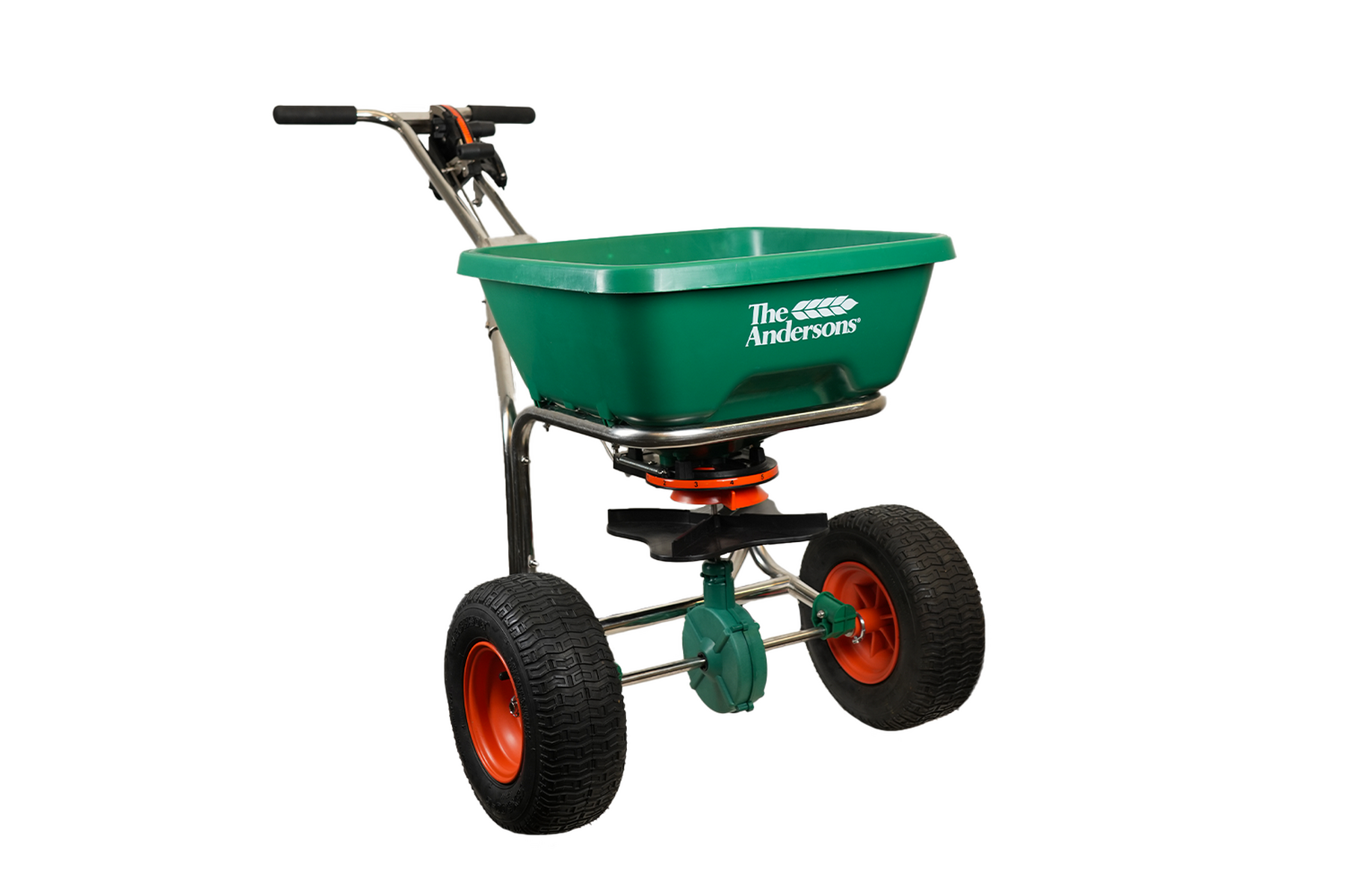 Engineered for precision and longevity, this spreader features a patented helical cone-adjust system for superior spread pattern accuracy. The heavy-duty stainless steel frame ensures long-lasting performance, while pneumatic tires provide smooth, stable operation. Includes EdgeWise™ technology, eliminating the need for a metal deflector shield. Hopper cover included.